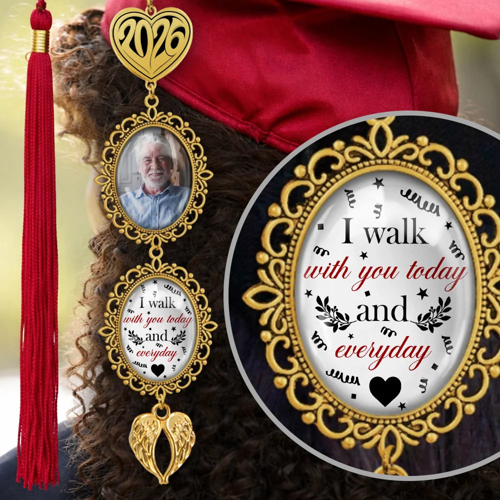 I Walk With You Today And Everyday - Custom Graduation Tassel Photo Charm GT05
