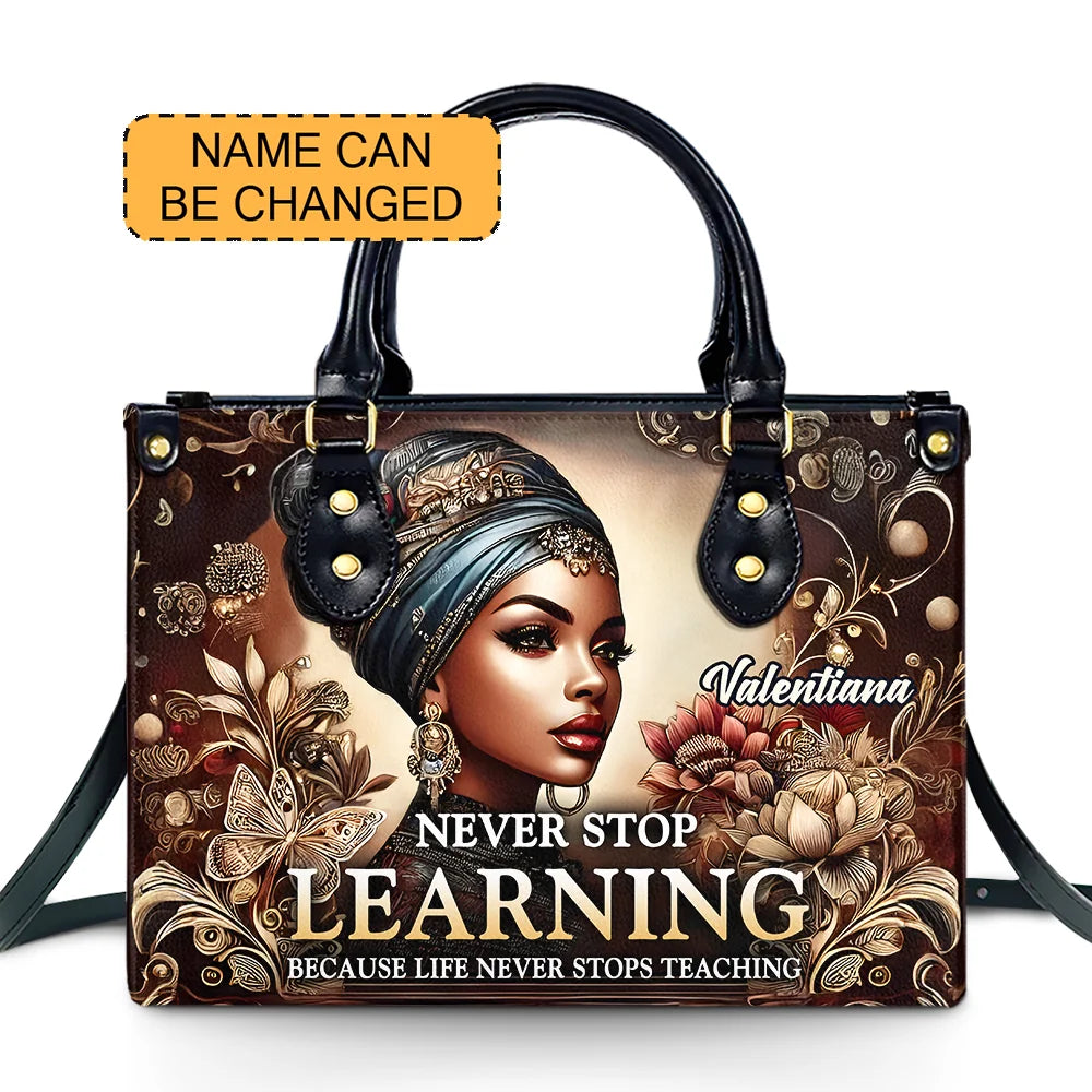 Never Stop LEARNING - Personalized Leather Handbag BLQ12A