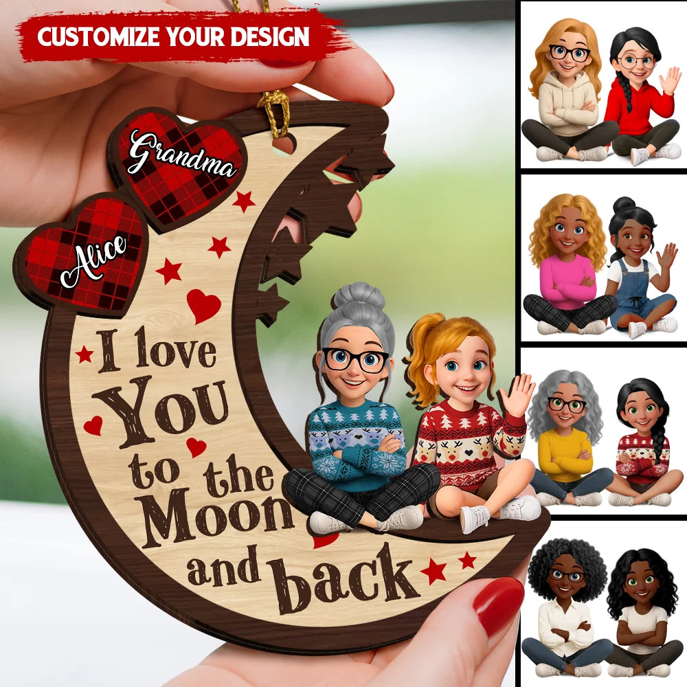 I Love You To The Moon And Back - Personalized Wooden Ornament WO38