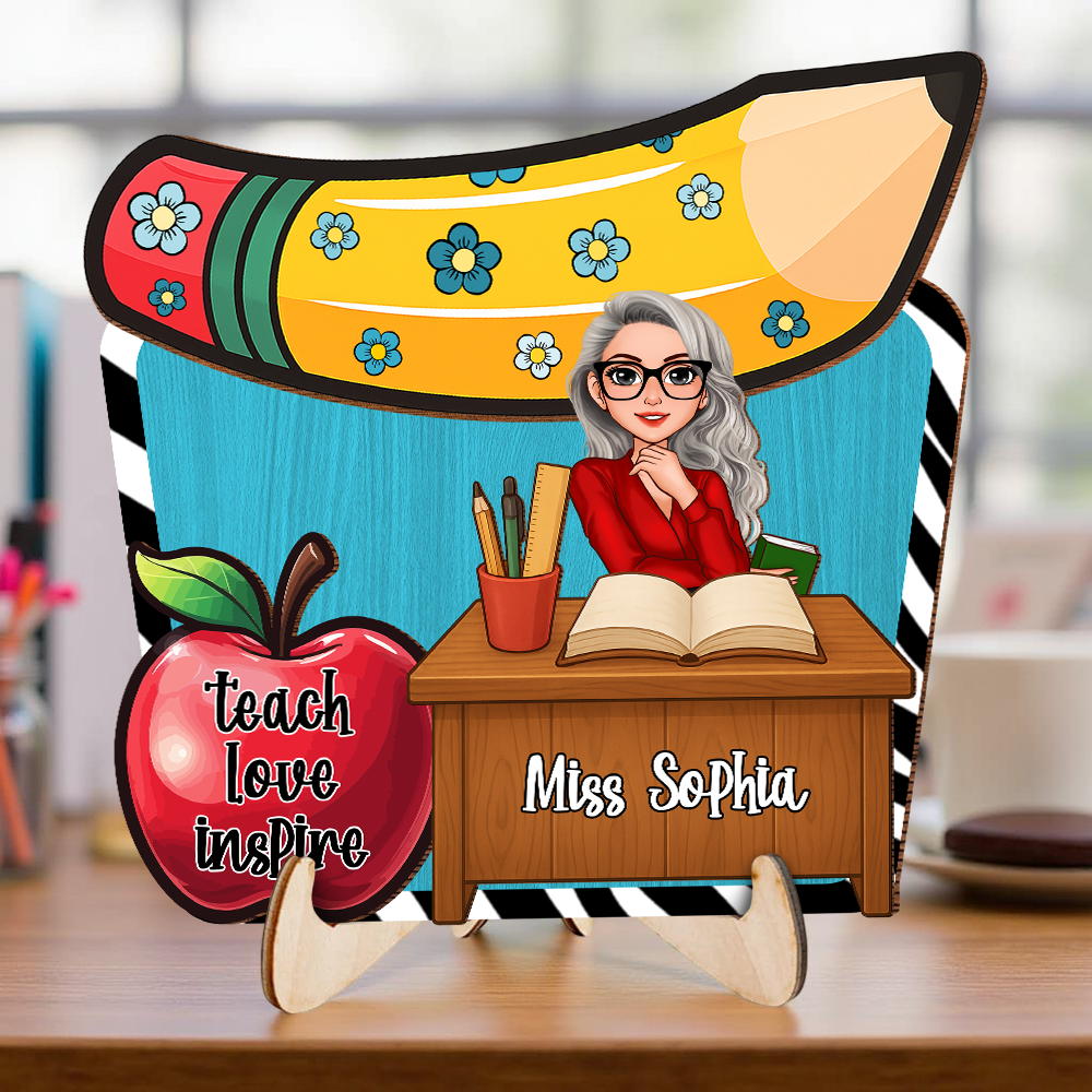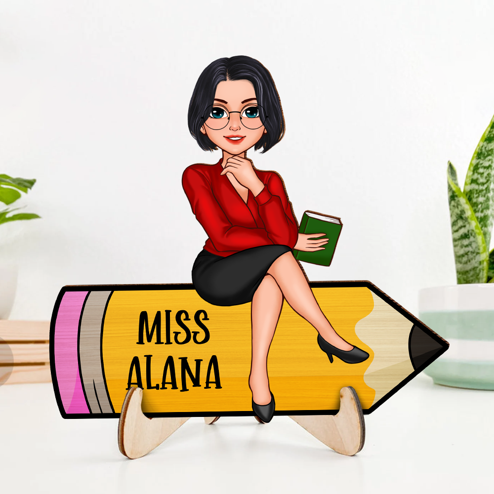 Teacher Sitting - 2-Layer Wooden Plaque - WP01
