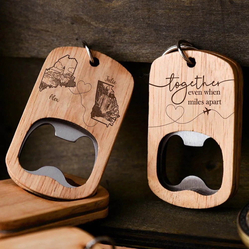 Together Even When Miles Apart - Personalized Wooden Bottle Opener Keychain KC13