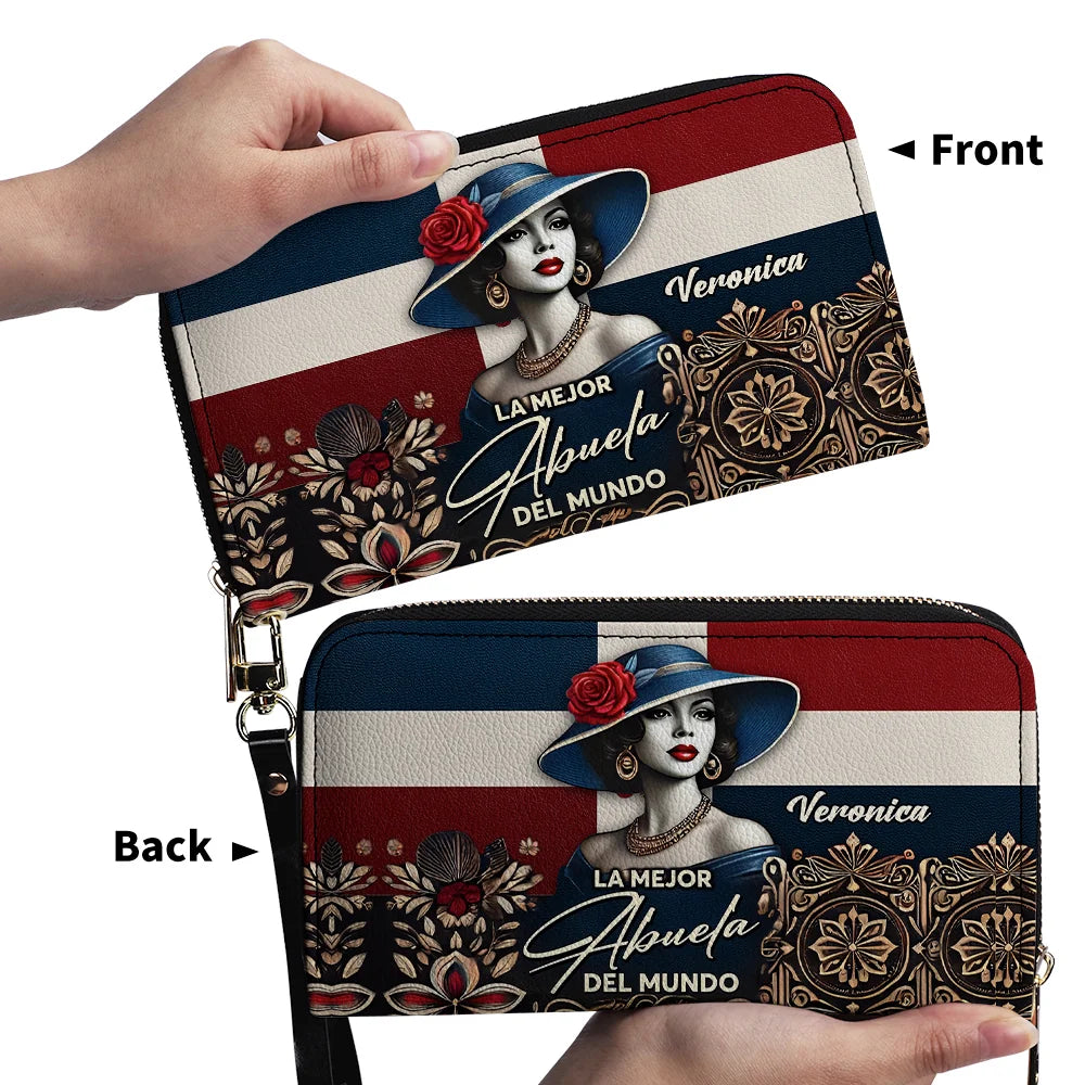 La Mejor Abuela Del Mundo - Personalized Leather Clutch Purse DOM09C