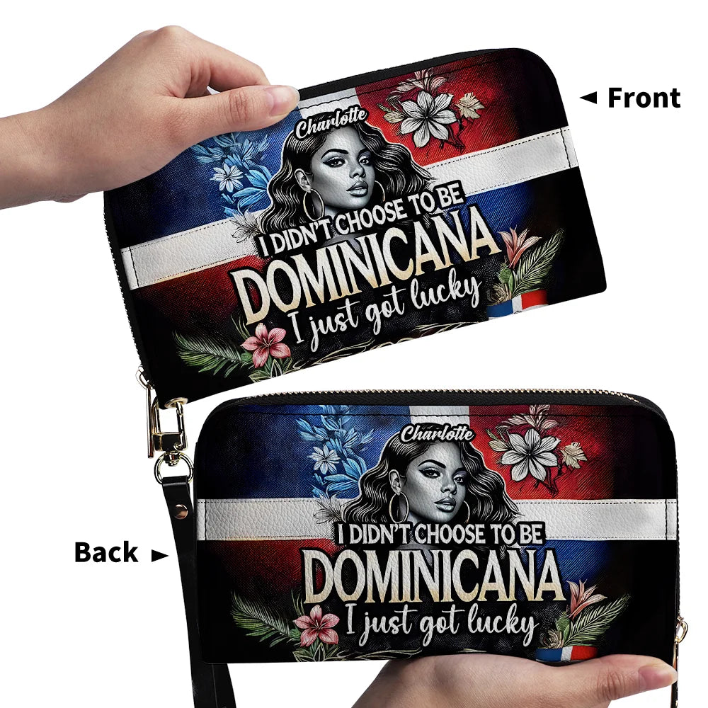 I didn't choose to be DOMINICANA. I just got lucky - Personalized Leather Clutch Purse DOM08C