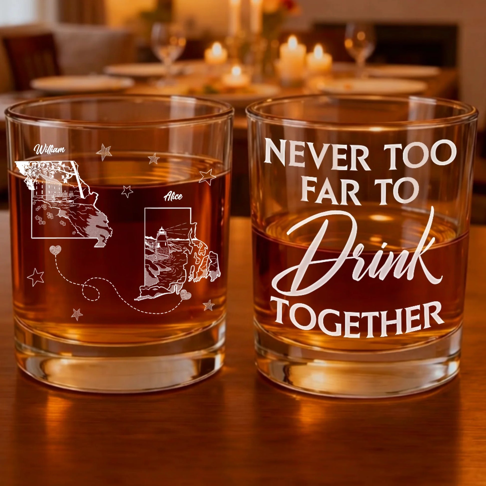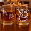 Never Too Far To Drink Together - Personalized Whiskey Glass GL17