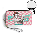 • Stylish all-over-print leather clutch purse