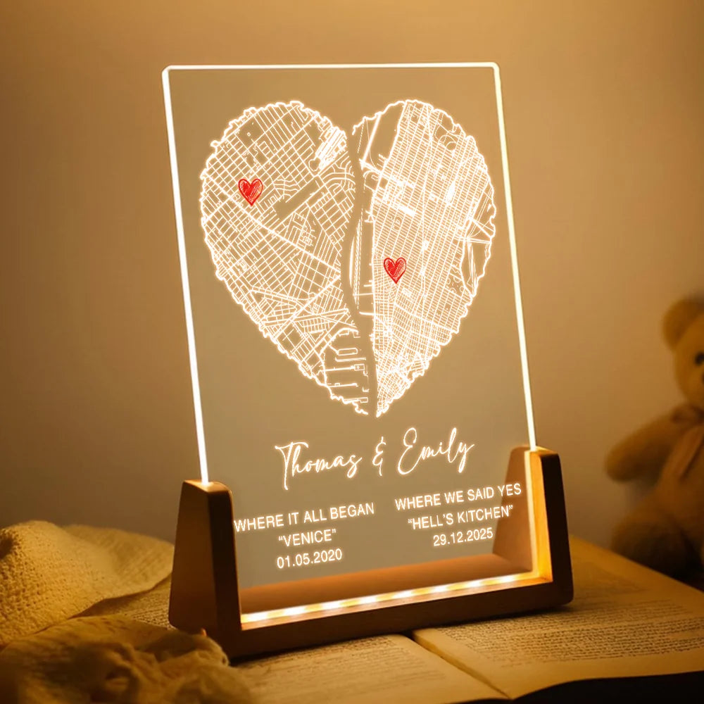 Bring warmth and meaning into any space with our Acrylic Night Light with U-Shape Wooden Base (Warm Light). Designed with a beautifully polished walnut wood base and a crystal-clear acrylic plaque, this night light combines modern elegance with emotional value.